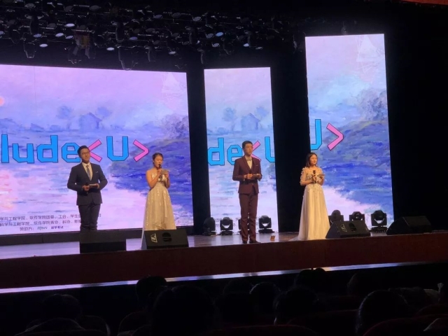 2018年12月22日18:30,公司迎新晚会2019”Include<U>”在焦廷标馆隆重举行,公司党委副书记兼副经理裴锋老师,计算机科学系副系主任倪庆剑老师,计算机工程系副系主任东方老师,公司办公室主任、工会主席王萃寒老师,计算机工程系杨全胜老师,宛斌老师,吴巍炜老师,李传佑老师,影像科学与技术系唐慧老师,计算机科学系王萌老师,公司机关徐少芸老师,宋美娜老师,邢婉秋老师,李方方老师,吕美香老师,蔡志玲老师,黄晓菁老师莅临本场晚会,与公司优秀学子们共同庆祝新年的到来。