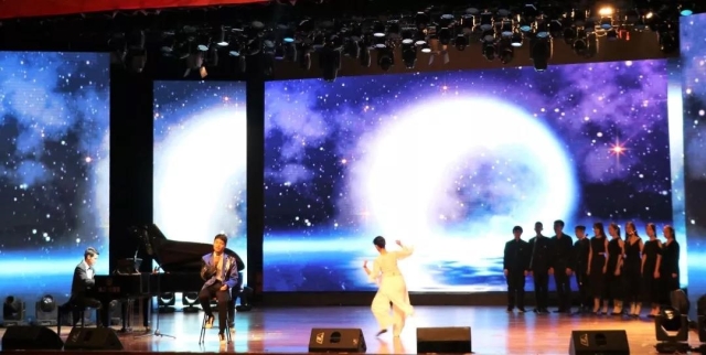 前面有老师们的《弯弯的月亮》,后有同学们的《看月亮爬上来》,琴声灵动,歌声多情,我们新一辈也在用我们的声音传达着我们的爱。