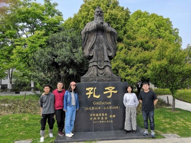 各个队伍于当天下午两点从计算机楼领取任务卡并出发。定点合影的三个地点分别为:宿迁玫瑰园,体育馆,孔子雕像地点。各个参赛队伍都完成了这个任务。