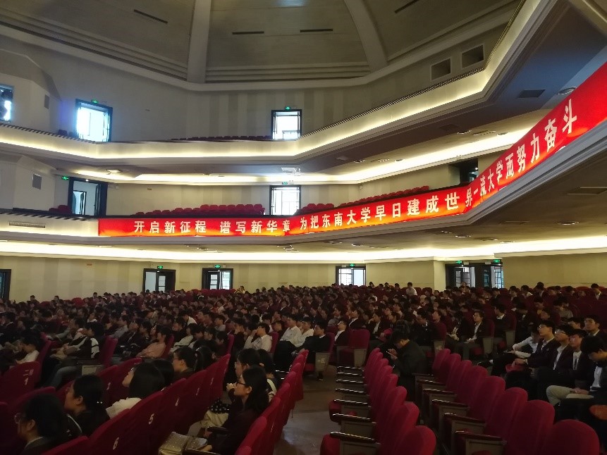 参观结束后,领导和老师与同学们在庄重的大礼堂进行交流。交流会伊始,在场师生一同观看了公司形象宣传视视频,同学们对学养深厚、学风严谨的百年东大有了更清晰的认识。随后倪庆剑老师从四个方面展开宣讲,分别介绍了东大的历史积淀,雄厚实力,以及东大学子丰富的学习生活,同时也对在座员工表达了期许,希望能在东大再次见到各位同学的身影。