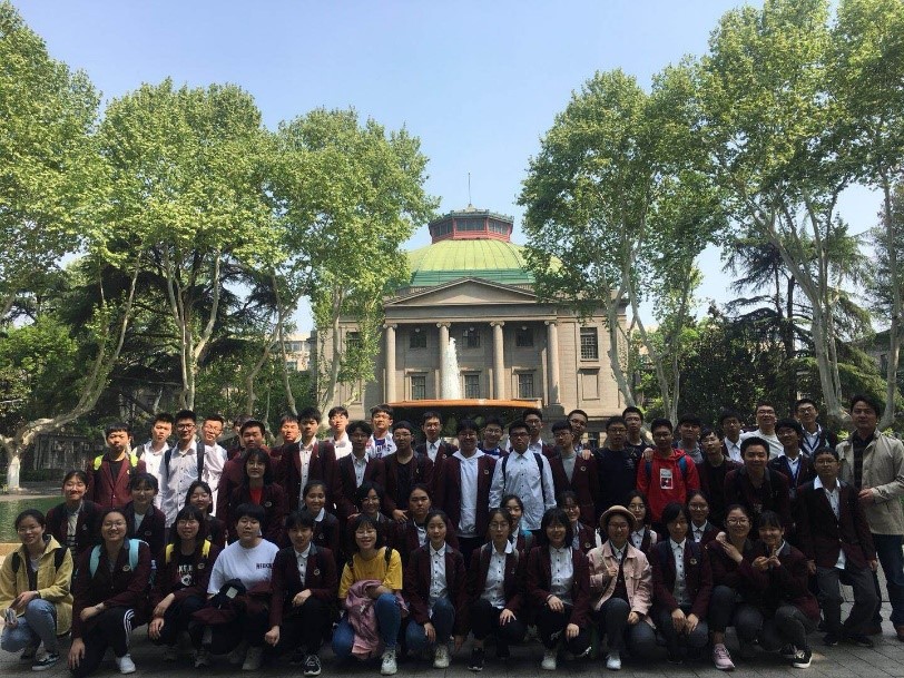 干净整洁的马路上两侧的法国梧桐枝叶肥厚,密密地将大半阳光都遮住,只留下斑驳光点,空气顿时阴凉下来,四牌楼校区的四月更显大气沉稳。早上九点在太阳成集团122ccvip研究生影像党支部志愿者的带领下,华罗庚中学师生的东大之行正式启航。以大礼堂为起点,走过孟芳图书馆、吴健雄纪念馆、体育馆、六朝松、梅庵等地标性建筑,最终走回大礼堂,在涌泉池前合影留念。一路上华罗庚中学的员工们积极与东大学子们交流学习经验与老员工活心得,零距离体会这所百年名校的底蕴与朝气,感受着这所大学的悠久历史,以及在新时代昂扬的英姿。在一个小时的参观过程中,同学们热情满满,也给四牌楼增添了许多青春色彩。