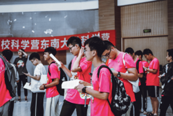 在各班班主任的引导下,近两百名高中生有序进场。在拿到活动简介和积分卡后,同学们便迫不及待地去挑战自己感兴趣的游戏项目,在每个项目前,都有工作人员进行耐心地讲解和示范。舞台上,主持人一遍又一遍地播送着各种通知,跳动的微信墙上也实时展示了同学现场游戏的照片。同学们或是兴高采烈地享受着团队游戏,或是全神贯注地投入到智力游戏中,场上不断传来同学们欢快的笑语声和紧张的加油声。