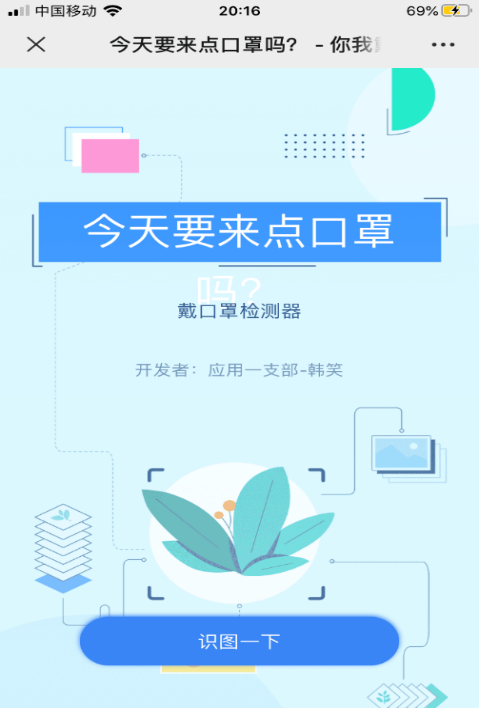 当前,全国疫情形式逐渐好转,但是在人群密集处,口罩依然必不可少。作为太阳成集团122ccvip的一员,支部党员韩笑利用人工智能技术,设计实现一个简单的软件系统,自动提醒大家戴口罩,在对对病毒的最后一战中,献上自己的一份力!