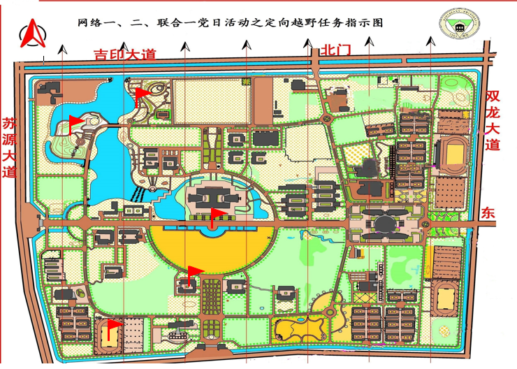 本次趣味定向越野以比赛形式进行,为提高活动参与度,设一二三等奖,越野路线分布在公司西南到西北一侧,全程5公里。比赛以小组形式进行,每两人一组,需按照地图找到四个隐秘任务点并完成相关任务从而收集印章,最后按照用时长短进行排名。