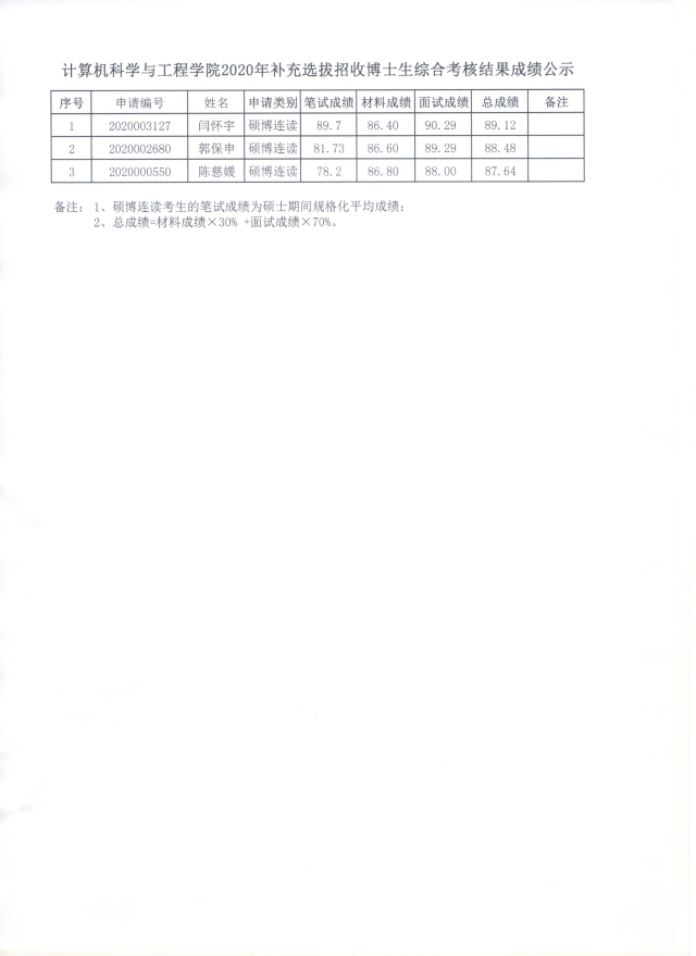 太阳成集团122ccvip2020年补充选拔招收博士生综合考核结果成绩公示