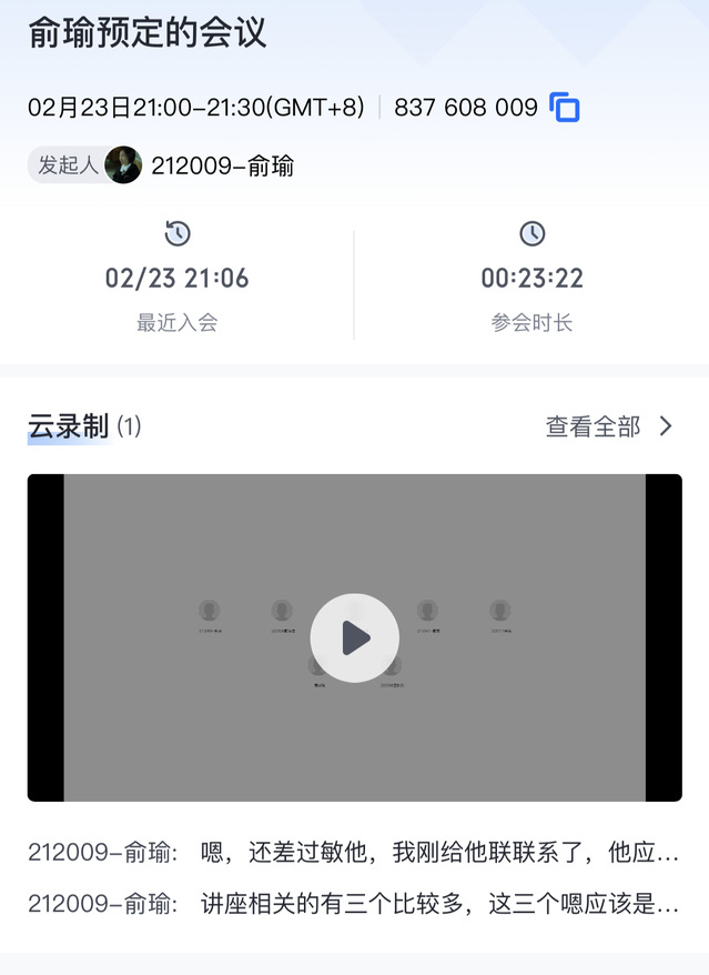 2023年2月23日,太阳成集团122ccvip研究生会于线上召开了春季学期第一次部门负责人及以上会议,会议主题为“春季学期工作安排”,由主席团成员俞瑜主持、秘书部负责人贾梁负责记录,应到7人、实到7人。