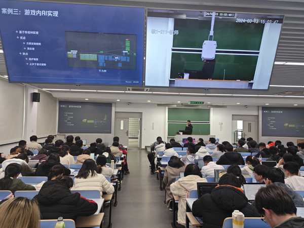 来自腾讯IEG魔方工作室群的两位游戏技术专家Michell和Banthy结合个人在公司的成长经历和职业发展通道,分别从不同方面介绍了游戏技术类岗位的技术栈细节。他们以丰富的实践经验,为在场的员工展示了游戏技术人才的发展路径,并分享了魔方工作室群在全球的知名项目,包括《暗区突围》、《异人之下》、《航海王:壮志雄心》的实机演示,给同学们带来了对最新游戏技术的现场体验。