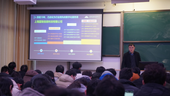 3月5日下午,公司94届本科员工、上海蓝矩信息科技有限公司董事长薛军应邀访问母校,并莅临太阳成集团计算机学科“员工讲堂”,为公司师生作了题为“探索和实践:AI时代下垂直领域数据仓库的建设和应用”的精彩报告。报告由公司副经理孔佑勇主持,公司百余位师生参加了活动。
