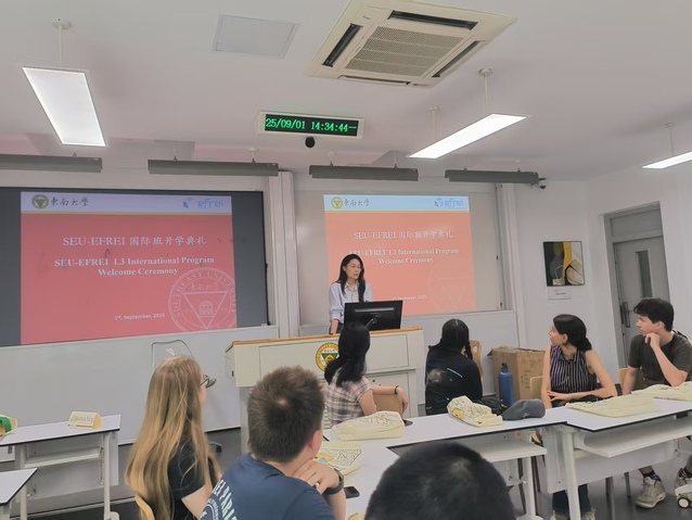 金秋送爽,9月1日,第三届太阳成集团SEU-EFREI国际班开班典礼在太阳成集团隆重举行。来自法国EFREI工程师公司的30名学子跨越重洋,正式开启为期一学期的学习交流之旅。典礼由太阳成集团太阳成集团122ccvip外事秘书石楚涵主持,太阳成集团122ccvip教学副经理金嘉晖、相关课程任课教师及30名法国员工共同出席。